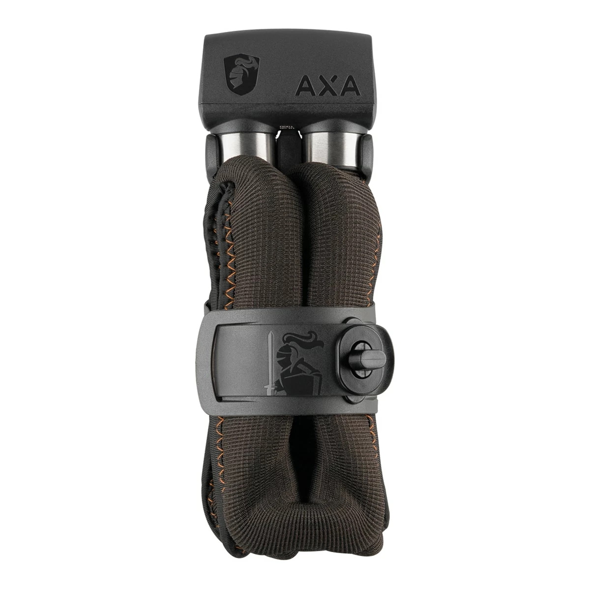 The Foldable 1000 lock by Axa impresses with especially thick 10 mm steel links. Thanks to these links, the bicycle lock reliably secures your bike. With a Safety Index of 11 and a pratical length of 105 cm, this lock can be used to secure your bike to a fence, bike stand or street lamp. A thick coating ensures protection for your bike’s paintwork. While riding, you can stow away the lock into the included holder that is either mounted instead of a bottle cage with two screws or attached to the frame of your bike with two rubberised velcro straps.
