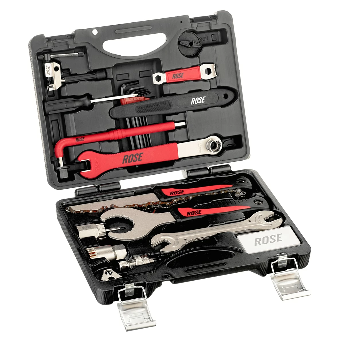 The ROSE All2gether Tool Box is ideal for at home or on the go! With a well-stocked tool box, you can complete just about any maintenance or repair work on your bike. The robust plastic case contains just about everything you need to quickly get back into the saddle.