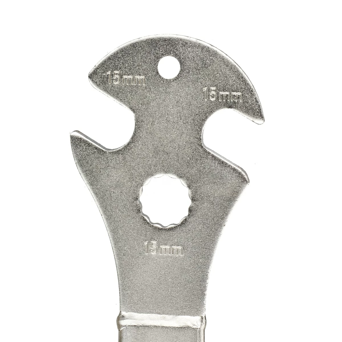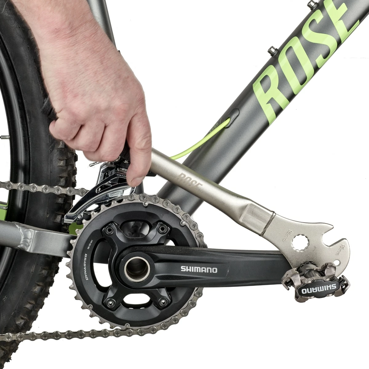 Thanks to the special bend of the 2 pedal nut mounts, you always have the ideal position for mounting/dismounting the pedals. Optimal power transmission is also guaranteed by the extra long lever arm with its rubber-coated handle.