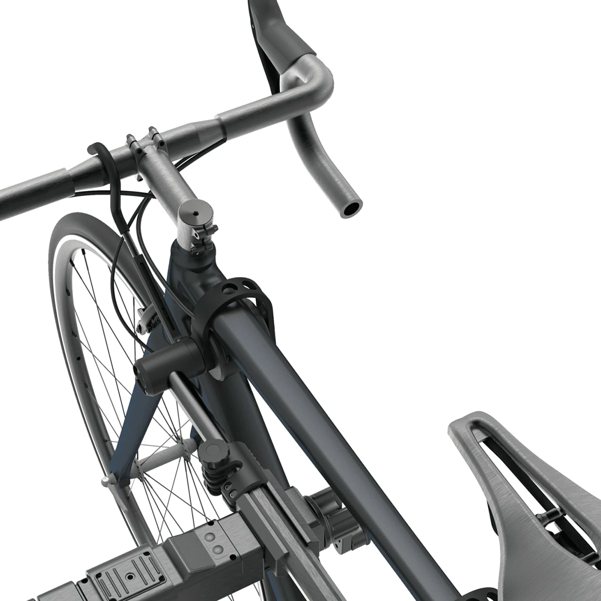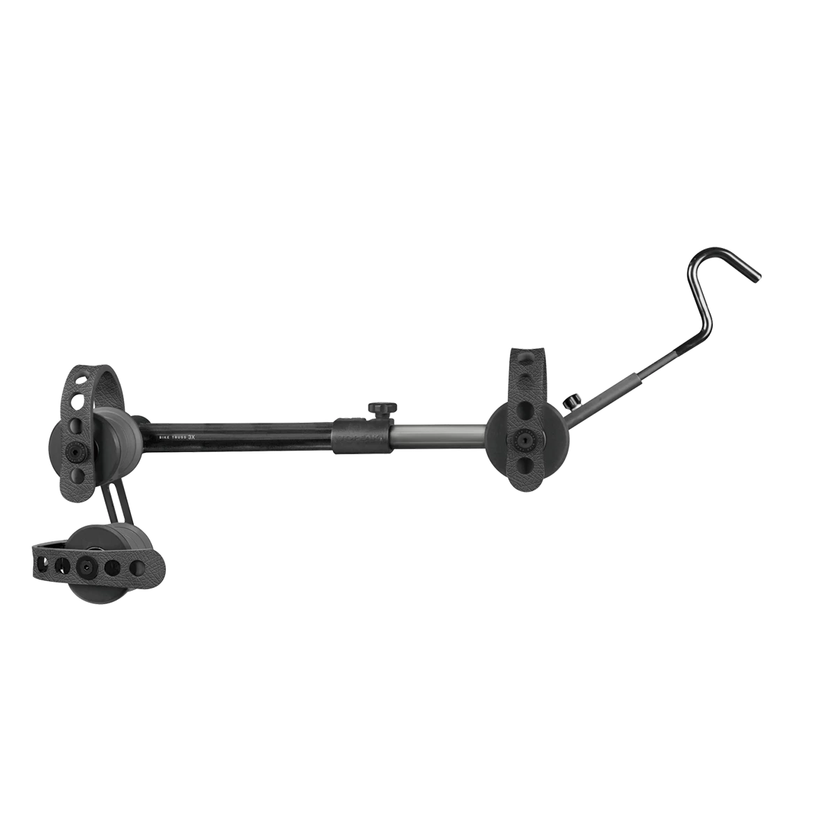 The solution for safely attaching delicate carbon frames to your assembly stand: The Bike Truss 3X from Topeak gently holds the frame at three attachment points and can be clamped into the mounting arm of the assembly stand. This way, the clamping forces do not affect the frame itself, which rests securely fixed on the upper contact points. The third contact point and the adjustment options of the Bike Truss 3X guarantee a firm hold for controlled work – as if the frame were clamped directly. The additional handlebar stabilizer also ensures that the cockpit and front wheel do not become unstable during your work.