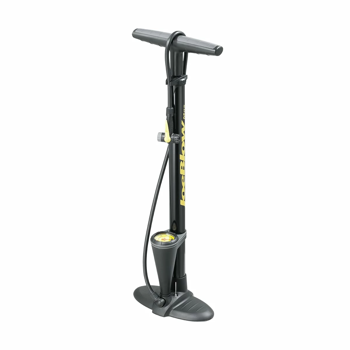 • Floor bike pump for Presta, Schrader, and Dunlop valves